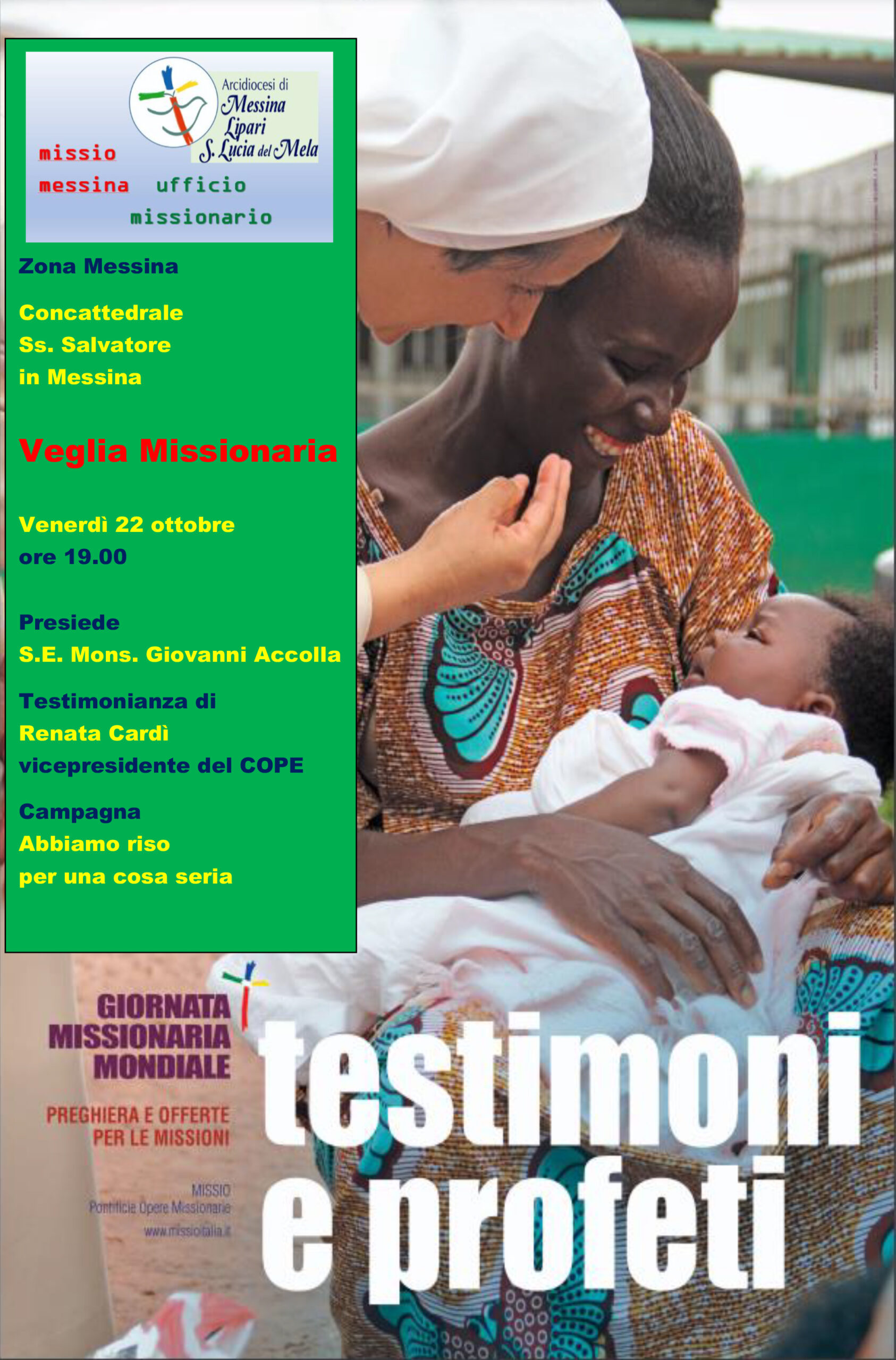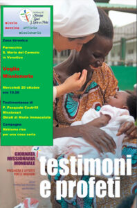 Il mese di ottobre, nella Chiesa italiana, è particolarmente dedicato alla preparazione e alla celebrazione della Giornata Missionaria Mondiale che ricorre sempre nella penultima domenica del mese. Ogni anno questo appuntamento vuole alimentare la fraternità universale della Chiesa, ossia la comunione con tutte le Comunità Cristiane sparse nel mondo, oltre all’impegno di solidarietà con le Chiese di più recente formazione, con quelle che vivono nei paesi più poveri e con quelle che soffrono persecuzione.