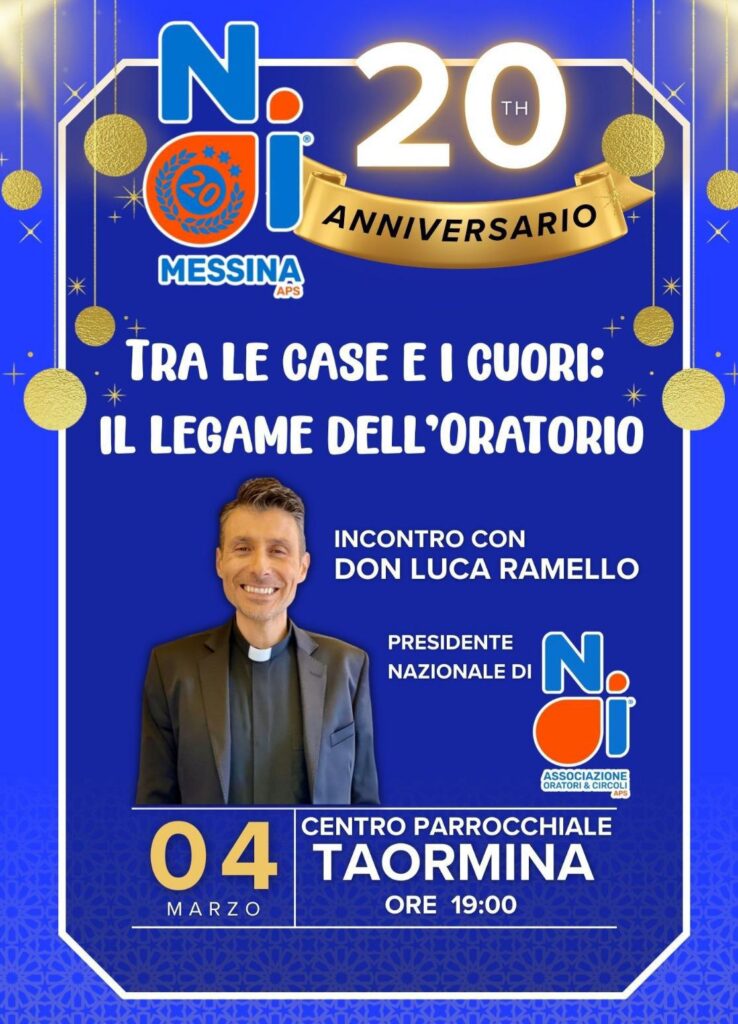 Nel cammino dei 20 anni di NOI Messina APS, ci sarà la possibilità di vivere un momento significativo di incontro e di riflessione dedicato al valore dell’oratorio nelle nostre comunità parrocchiali.