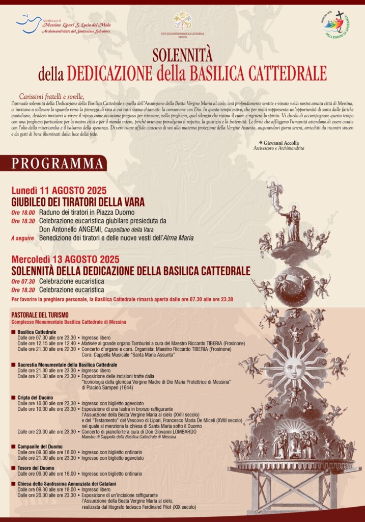 Il 13 agosto 2025 si celebra l’anniversario della dedicazione della Basilica Cattedrale, chiesa madre di tutte le chiese dell’arcidiocesi, nel ricordo liturgico della dedicazione avvenuta il 13 agosto 1947, quando – in seguito ai gravi danni causati dai bombardamenti della Seconda Guerra Mondiale – la cattedrale venne riaperta al culto dall’arcivescovo Angelo Paino, nuovamente dedicata e insignita del titolo di Basilica da Pio XII.