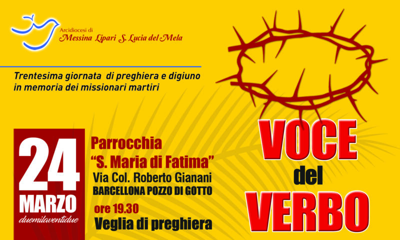 Sabato 31 maggio alle ore 21.30, presso la Basilica Cattedrale e successivamente a piazza Duomo – Messina, nell’ambito del progetto pastorale “Sentinelle nella notte”, l’Ufficio Liturgico, l’Ufficio Migrantes, l’Ufficio Missionario, l’Ufficio Insegnamento Religione Cattolica, la Pastorale Giovanile, la Pastorale Universitaria, il Seminario Arcivescovile, l’USMI e il CIIS propongono LA FESTA DELL’ANNUNCIO, evento che tende a […]