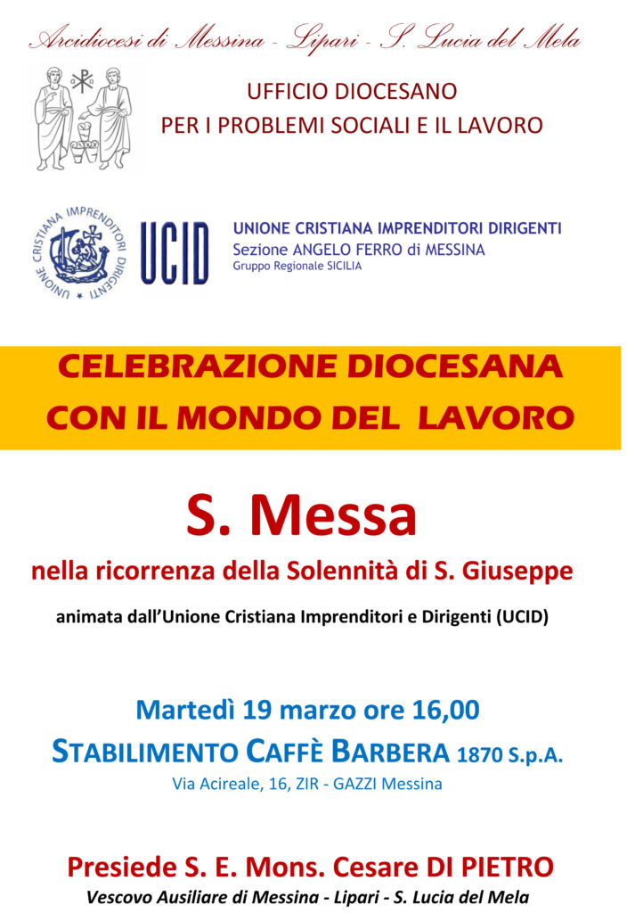 Martedì 19 marzo alle ore 16.00, presso lo Stabilimento Caffè Barbera 1870 S.p.A. (Via Acireale, 16, ZIR Messina), promossa dall’Ufficio diocesano per i Problemi sociali ed il Lavoro, sarà celebrata la S. Messa presieduta dal vescovo ausiliare, mons. Cesare Di Pietro.