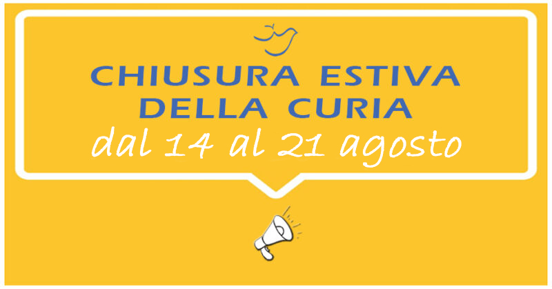 Si informa che gli uffici della Curia Arcivescovile chiuderanno per la pausa estiva da lunedì 14 a lunedì 21 agosto compreso, con riapertura martedì 22.