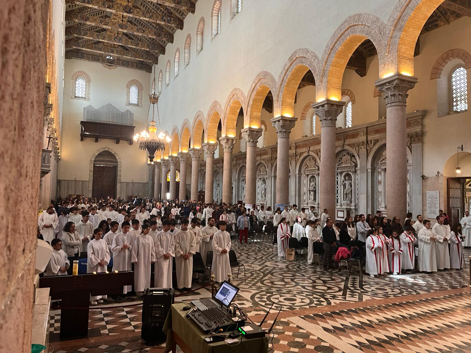 Nella sua lettera rivolta ai ministranti, l’arcivescovo Giovanni Accolla ha spiegato il senso del tema, “comprendere la straordinaria bellezza della vita di battezzati, chiamati a formare quel meraviglioso poliedro che lo Spirito Santo intende continuare a comporre lungo i tempi della storia e della Chiesa”. E, concludendo, ha rivolto il suo invito: “Vi attendo numerosi” …e i ministranti hanno risposto il loro sì. In più di quattrocento sono accorsi in Cattedrale per la celebrazione presieduta dall’arcivescovo e poi proseguire le attività dell’intensa giornata, raggiungendo il quartiere Giostra per avviare il corteo fino al Seminario S. Pio X, dove – tra giochi e iniziative animate dai seminaristi guidati dal rettore don Lino Grillo – la gioia e l’impegno hanno avvolti tutti in un unico abbraccio ed espresso il legame tra il Seminario e le singole comunità ecclesiali.