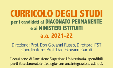 Volendo promuovere e valorizzare la ministerialità all’interno della nostra Chiesa diocesana, l’Arcivescovo è lieto di comunicare che a partire dal prossimo 3 febbraio 2022 avranno inizio i corsi di formazione teologica, presso l’Istituto Teologico “San Tommaso” di Messina, per gli aspiranti al diaconato permanente e per coloro che desiderano accedere ai ministeri istituiti.