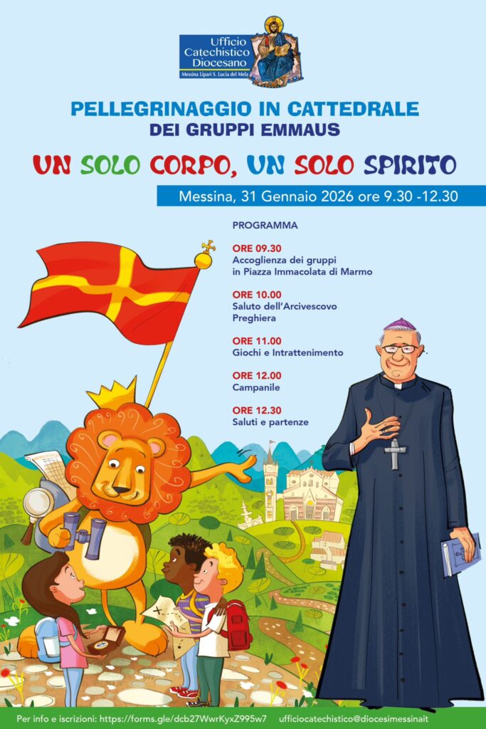 A chiusura del mese, il 31 gennaio, la Cattedrale di Messina accoglierà i ragazzi dei “Gruppi Emmaus” — coloro che riceveranno Cresima ed Eucaristia nel prossimo tempo pasquale — per un pellegrinaggio all’insegna del tema “Un solo corpo, un solo spirito”.