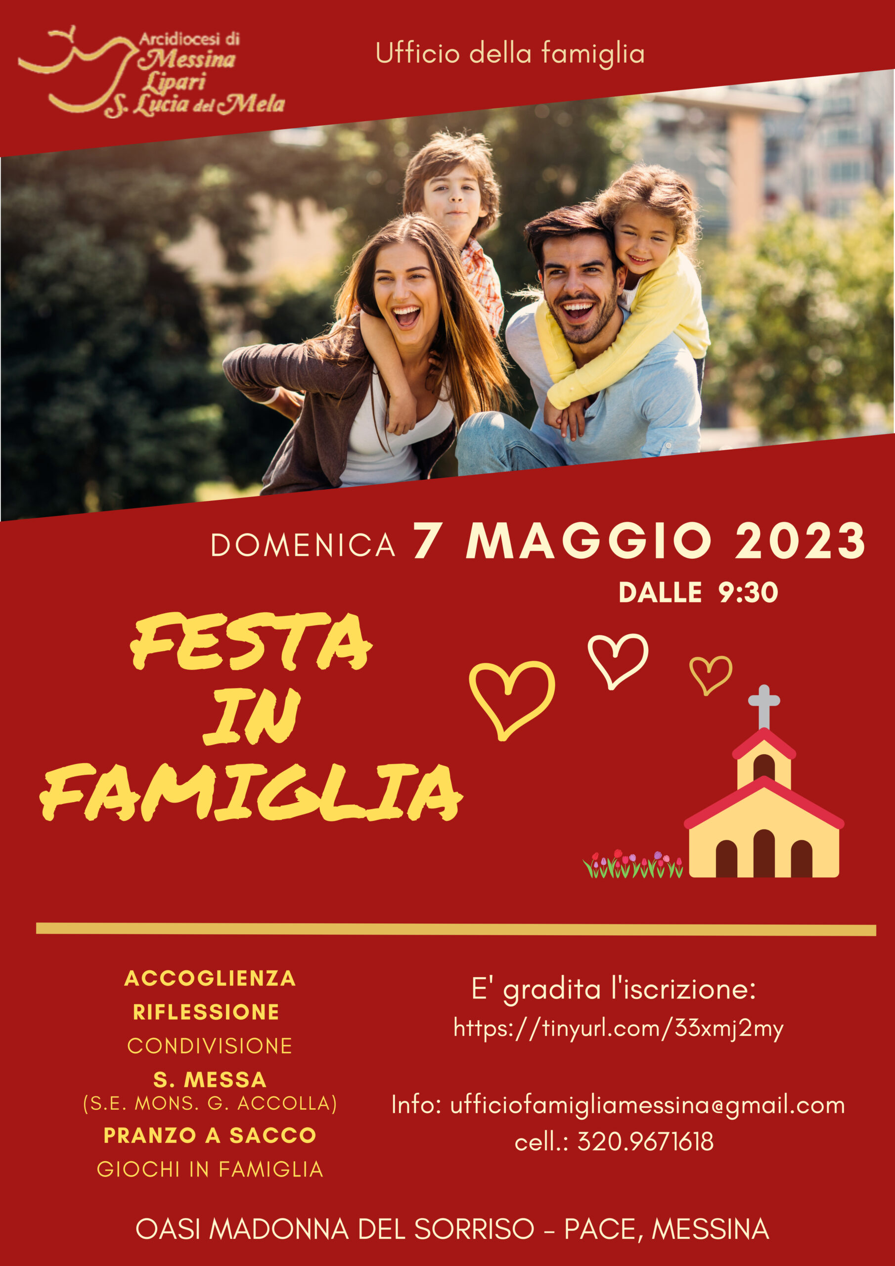 Domenica 7 maggio dalle 09:30 tutte le famiglie della nostra Arcidiocesi sono invitate presso l’ Oasi Madonna del Sorriso a Pace (Panoramica dello Stretto uscita PACE – Torrente Pace – Uscita OASI sulla sinistra).