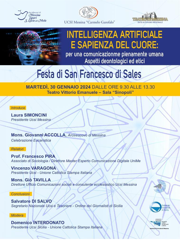 gli interventi proposti dal prof. Francesco Pira dell’università di Messina, il presidente nazionale dell’UCSI Vincenzo Varagona e mons. Giò Tavilla direttore dell’ufficio diocesano