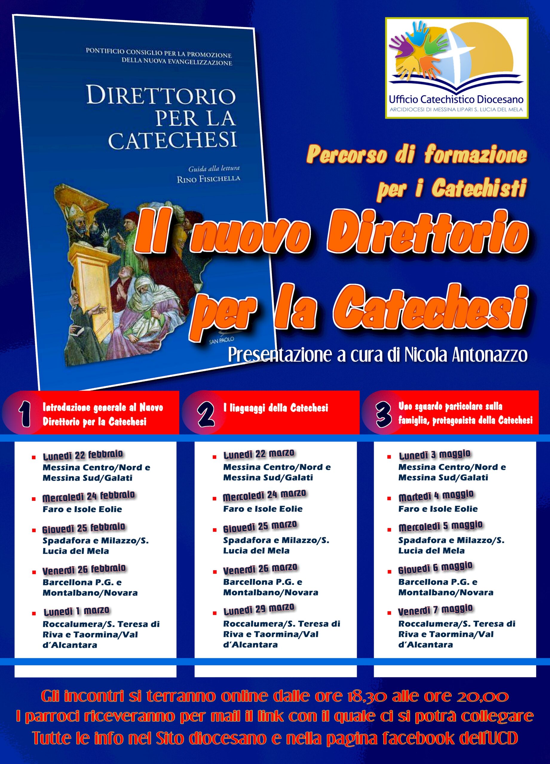 Gli incontri, la cui presentazione è stata affidata al professor Nicola Antonazzo, sono distinti nel modo seguente: i primi saranno introduttivi, i secondi si concentreranno maggiormente sui “linguaggi” della Catechesi, mentre l’ultima serie di appuntamenti volgeranno un particolare sguardo d’attenzione alle famiglie, quali protagoniste della Catechesi.