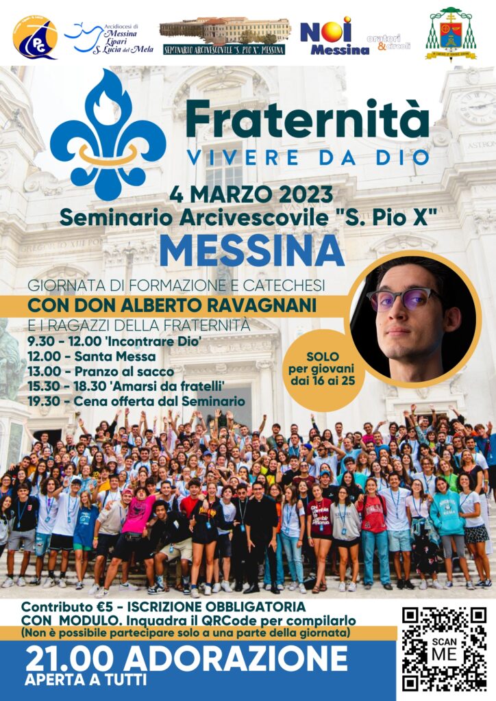 La comunità del Seminario Arcivescovile S. Pio X di Messina è lieta di proporre ai giovani dai 16 ai 25 anni una giornata di formazione e catechesi con don Alberto Ravagnani e i ragazzi della fraternità.