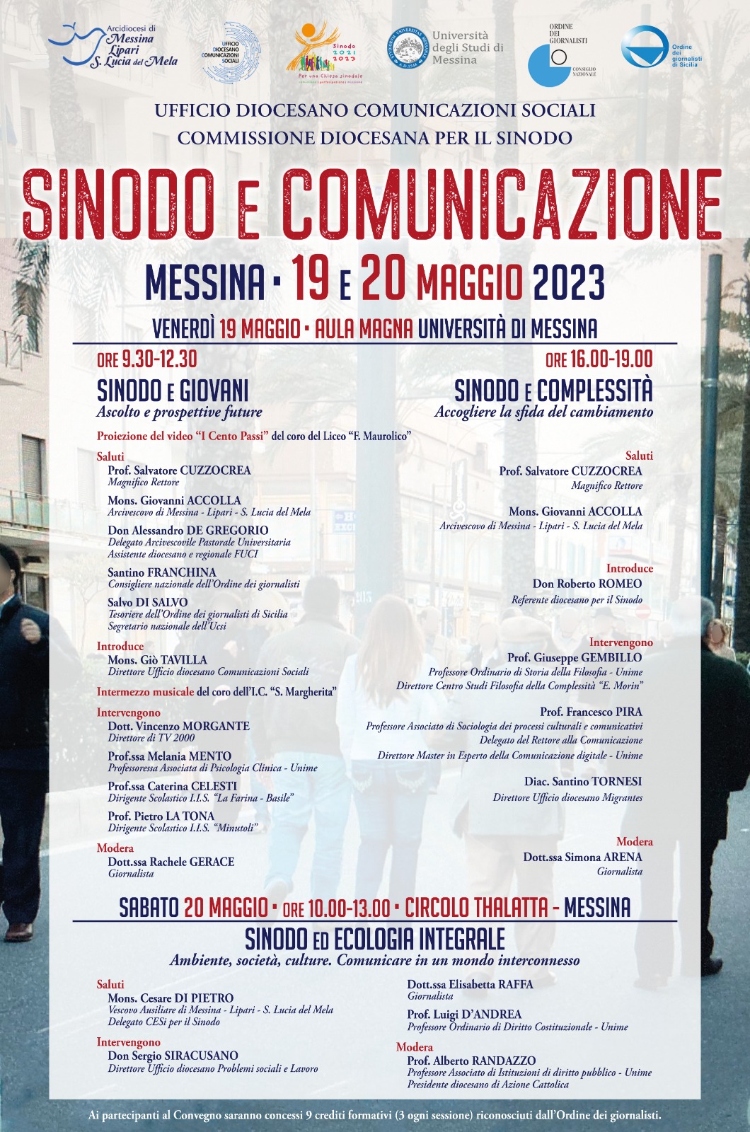 Nella settimana che precede la giornata mondiale, l’arcidiocesi attraverso l’Ufficio diocesano per le Comunicazioni Sociali unitamente alla Commissione diocesana per il sinodo ha organizzato un convegno dal tema “Sinodo e Comunicazione”, programmato nei giorni 19 e 20 maggio prossimi, con il coinvolgimento di altri uffici pastorali diocesani.