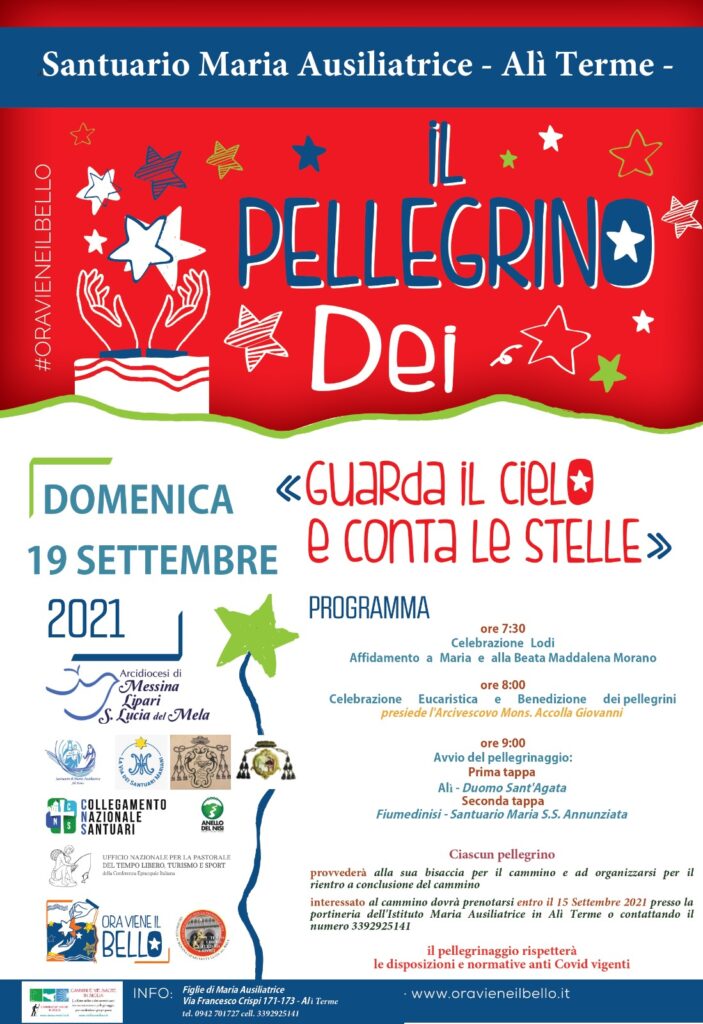 In occasione del “Pellegrino Dei“, giornata promossa dall’Ufficio nazionale per la pastorale del tempo libero, turismo e sport della Conferenza Episcopale Italiana, si svolgerà il pellegrinaggio partendo dal Santuario Maria Ausiliatrice di Alì Terme fino al Santuario Maria SS Annunziata di Fiumedinisi, passando per la chiesa Sant’Agata di Alì.