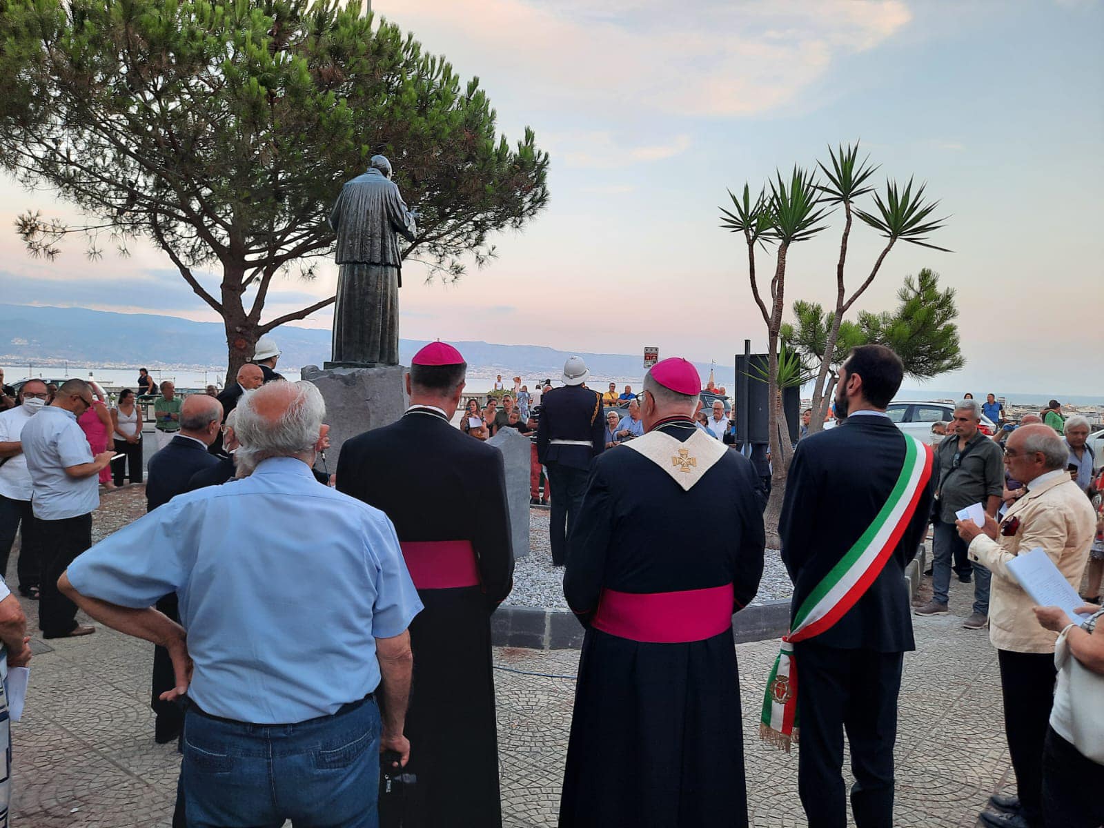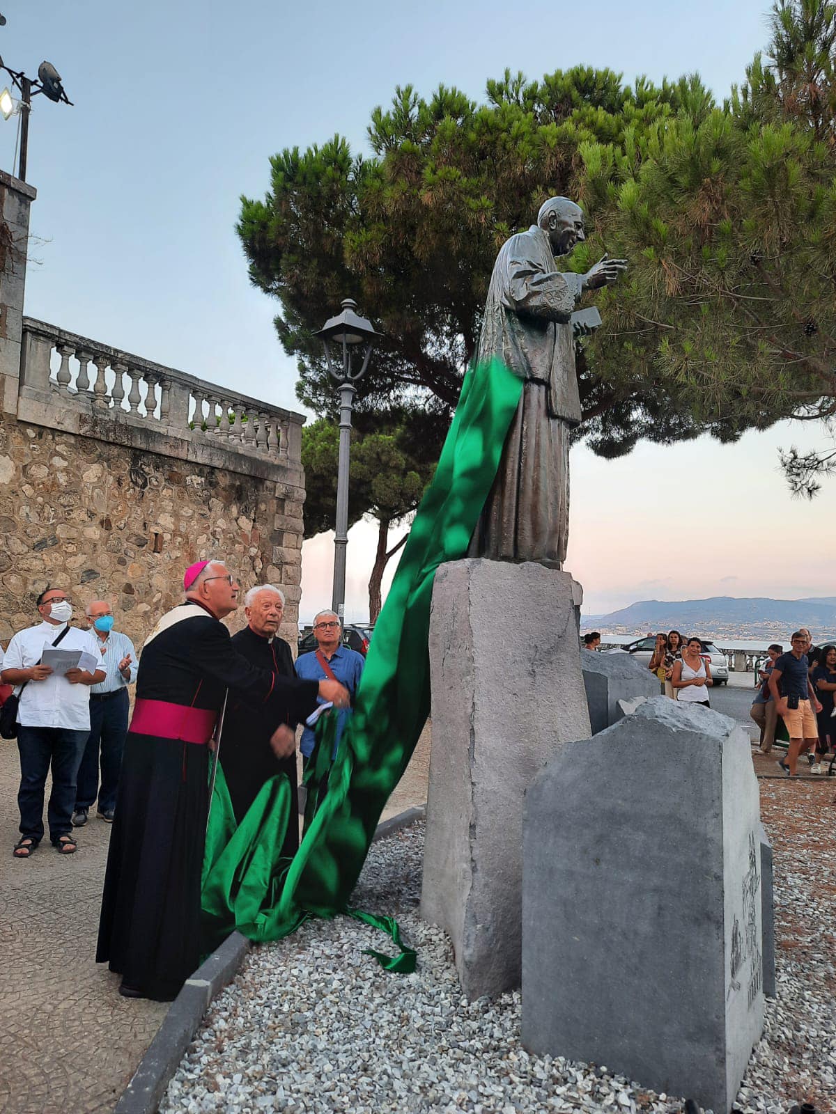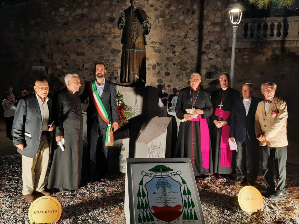 Sabato 13 Agosto Sua Eccellenza l’Arcivescovo Mons. Giovanni Accolla ha benedetto e inaugurato il Monumento all’Arcivescovo Mons. Angelo Paino (Santa Marina Salina 21 giugno 1870, Messina 29 luglio 1967), indimenticabile Pastore della Chiesa Messinese dal 1923 al 1963. La Statua – donata dalla Fondazione “Città del Ragazzo” di Padre Nino Trovato – e il Monumento sono collocati nell’Area sottostante il Sacrario di Cristo Re, con il desiderio di mantenere viva la memoria di un Arcivescovo così zelante e infaticabile. La scelta di collocare la statua di Monsignor Paino, realizzata dallo scultore Antonio Bonfiglio, proprio nel luogo in cui si trova non è casuale, ma è dovuta al fatto che l’Arcivescovo Paino, negli ultimi anni della sua vita, amava molto farsi accompagnare nei pressi del Santuario di Cristo Re per pregare la Madonnina del porto e affidare la Chiesa di Messina alla Vergine Maria.