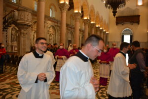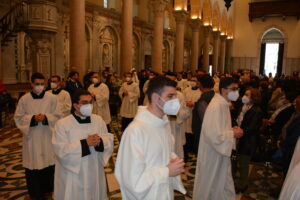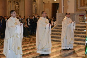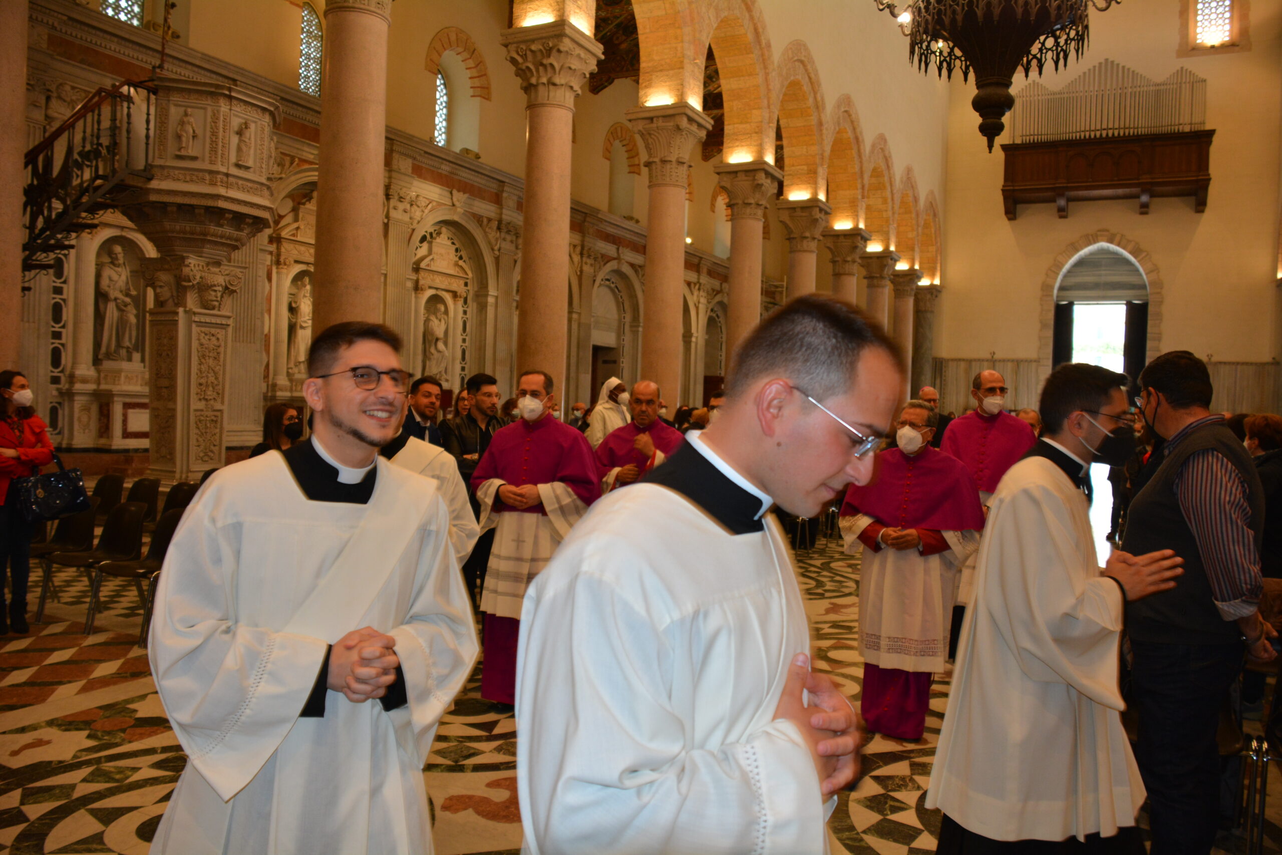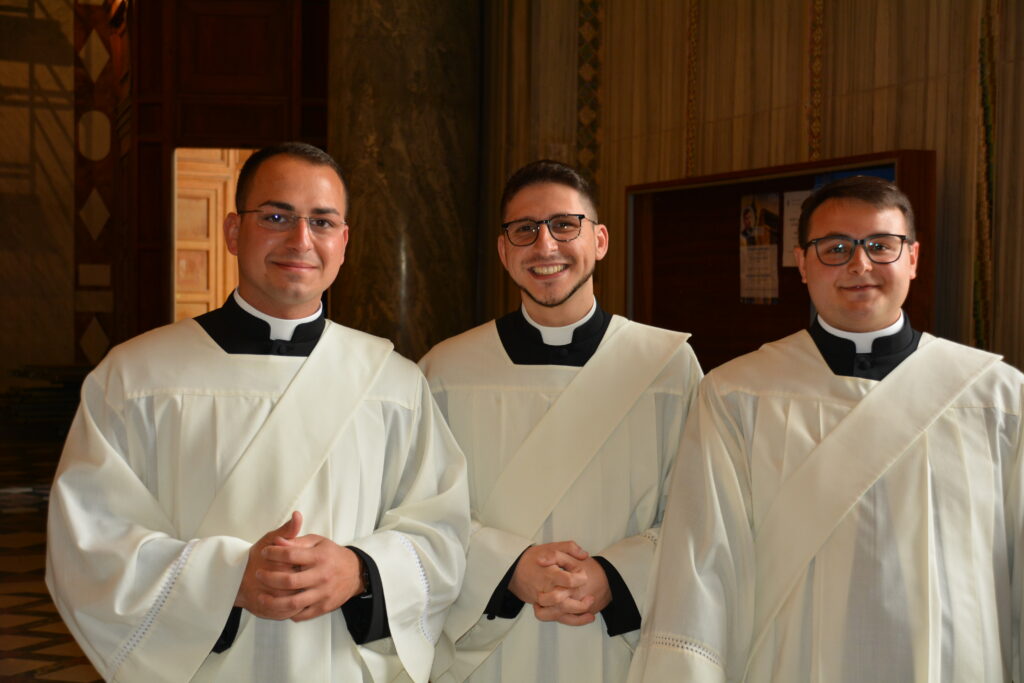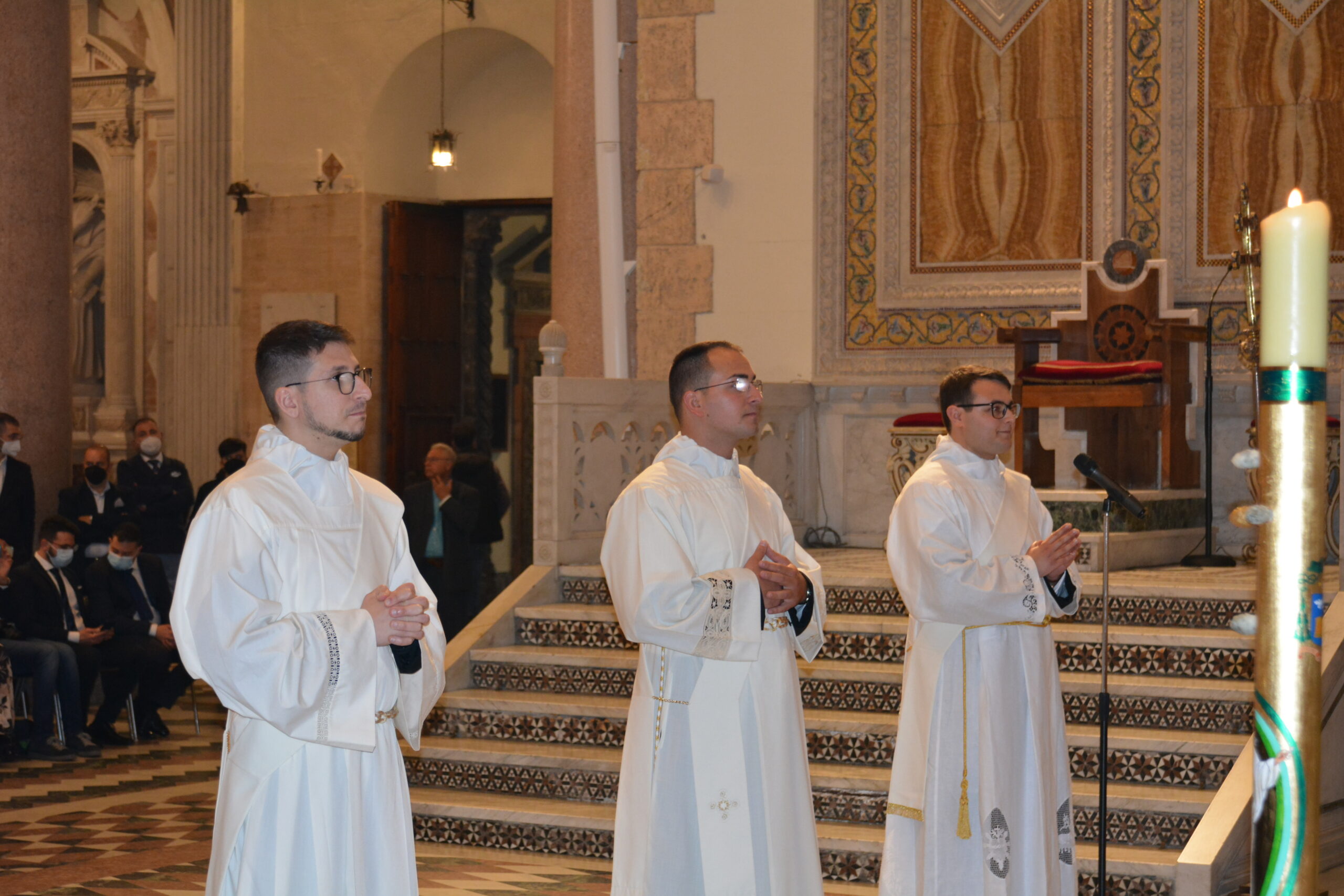 Visibile la gioia e la commozione negli occhi dei tre giovani scelti, come sottolineato dal Presule, a “seguire il Maestro partecipando del Suo sacerdozio regale e rimanendo in quella comunione profonda con Lui che passa anche attraverso la comunione con i fratelli“.