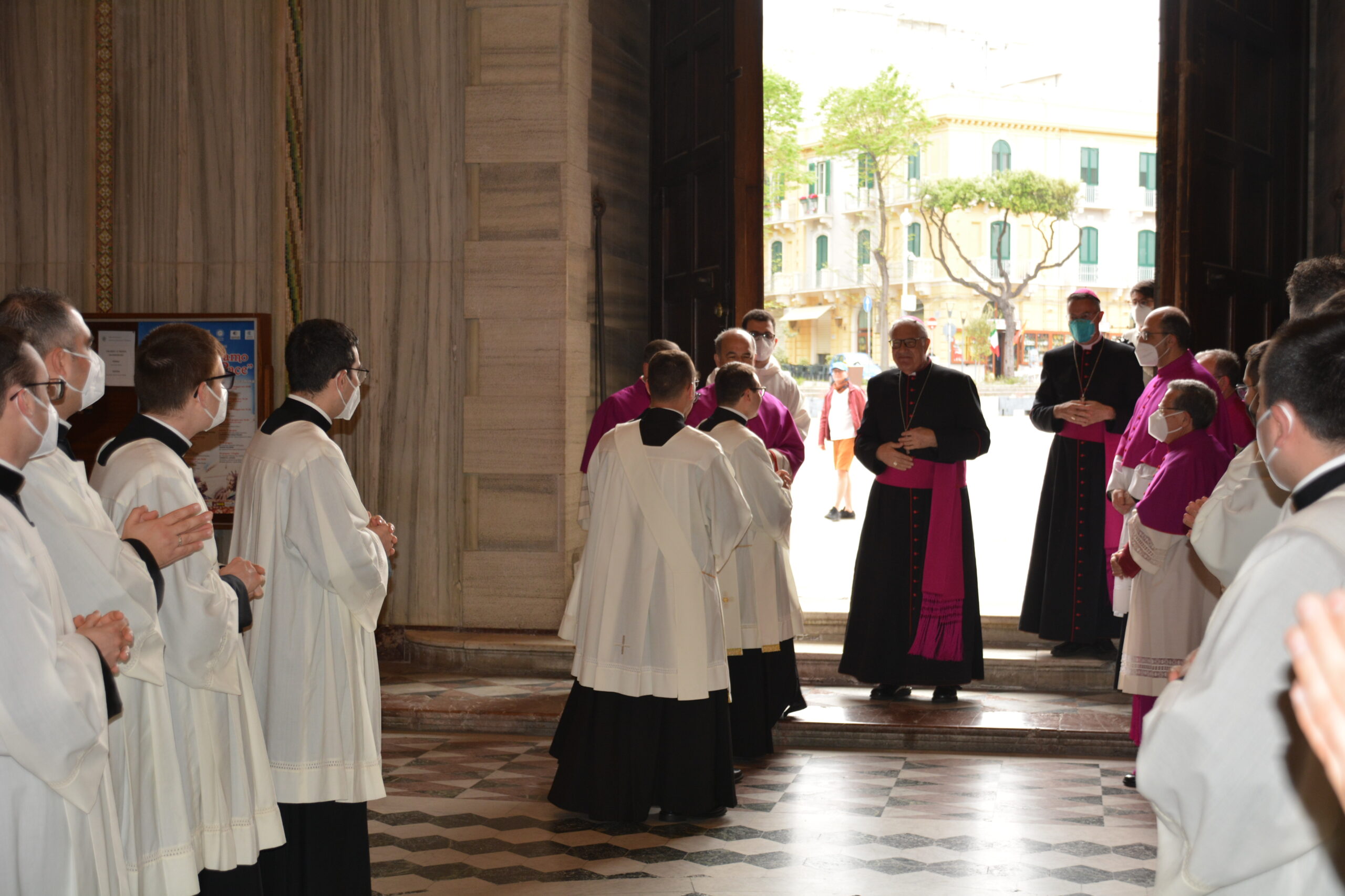 Durante l’Omelia, Mons. Accolla, rivolgendosi agli ordinandi, ha ricordato loro di essere “presbiteri chiamati a servire non come professionisti, ma come testimoni, con il cuore sempre unito a quello del Signore Gesù“.
