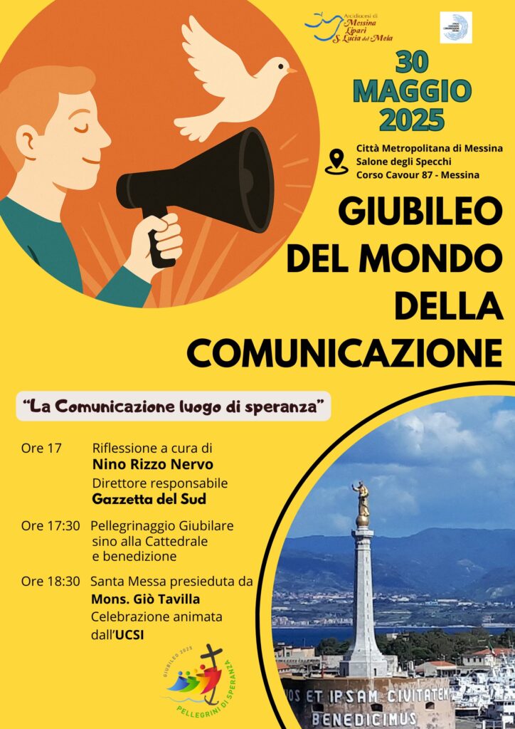 Nell’ambito del Giubileo della Speranza, l’Arcidiocesi di Messina – Lipari – Santa Lucia del Mela ha organizzato un momento di riflessione sul tema “La comunicazione luogo di speranza”, rivolto agli operatori delle comunicazioni sociali. A guidare la riflessione, venerdì 30 maggio alle 17 nel Salone degli Specchi di Palazzo dei Leoni (sede della Città Metropolitana), sarà il giornalista Nino Rizzo Nervo, direttore responsabile della Gazzetta del Sud, introdotto dal direttore dell’Ufficio diocesano per le comunicazioni sociali mons. Giò Tavilla.