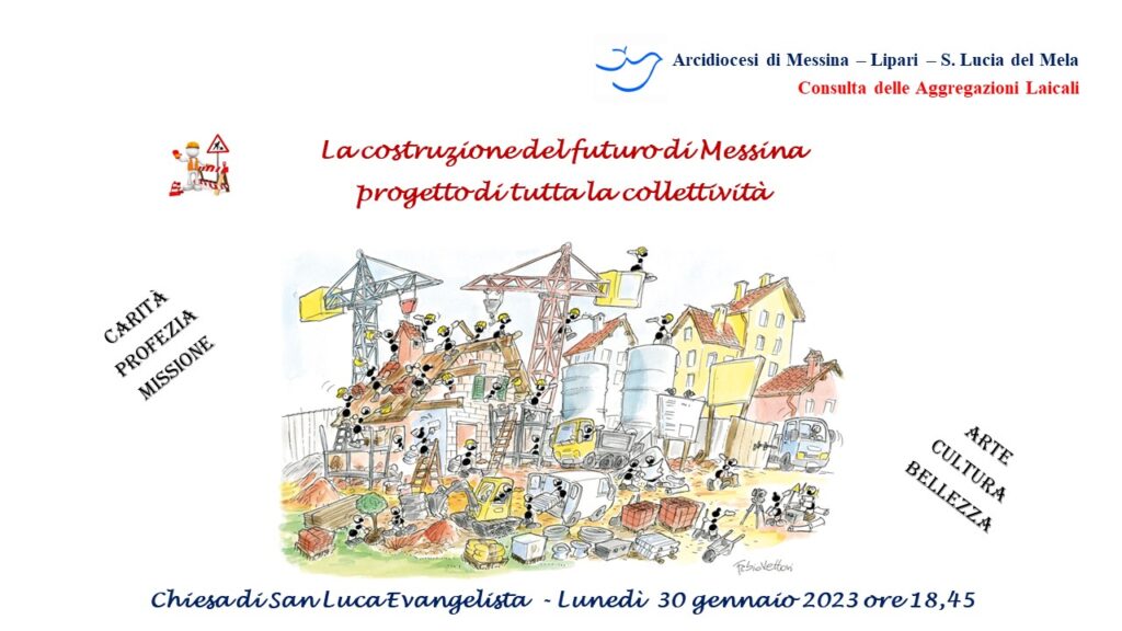 Sono invitati all’incontro i membri delle aggregazioni (non solo i rappresentanti in Consulta) e tutti coloro che hanno a cuore la città di Messina e i suoi abitanti. Continueremo insieme il lavoro dei cantieri, che abbiamo deciso di ridurre a due e rinominare: