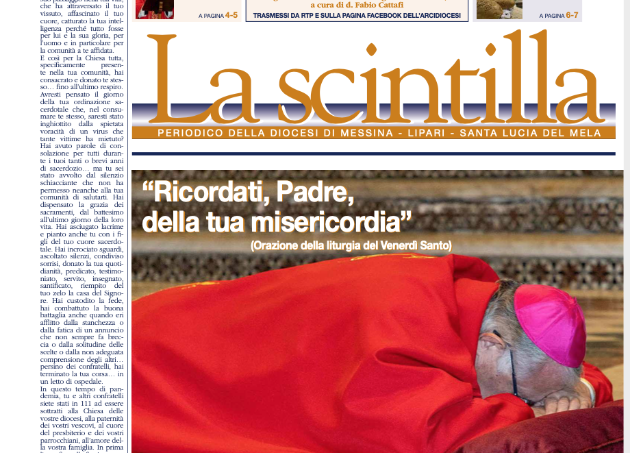 Numero di aprile de “La Scintilla”, con tutti gli aggiornamenti relativi alla vita diocesana: gli interventi dell’Arcivescovo, le iniziative degli uffici diocesani, le attività delle parrocchie. Questo numero contiene anche tutte le notizie sulla Settimana Santa 2020
