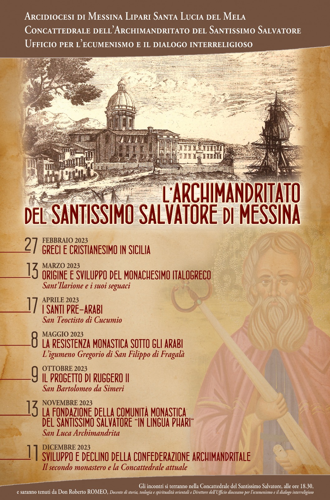 Per conoscere la storia della nostra Chiesa locale, l’Ufficio diocesano per l’ecumenismo e il dialogo interreligioso, di concerto con il Rettore della Concattedrale del Santissimo Salvatore, propone un ciclo di incontri sulla storia della tradizione cristiana di matrice orientale in Sicilia, con particolare riferimento al monachesimo italogreco e all’istituzione dell’Archimandritato del Santissimo Salvatore di Messina.