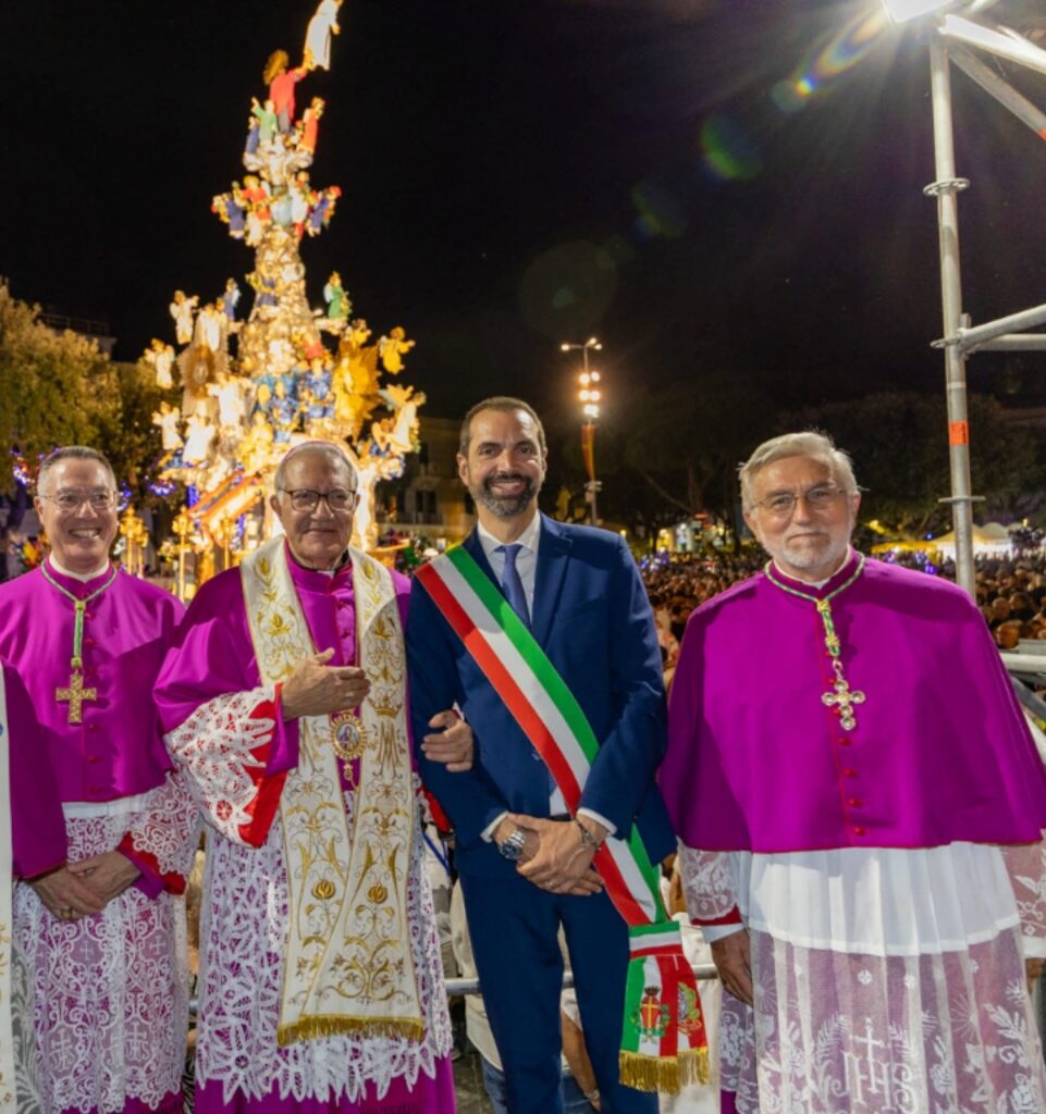 In una piazza Duomo gremita, l’arrivo della Vara è stato salutato con l’entusiasmo che sempre ha contraddistinto il popolo messinese, Nelle parole che l’arcivescovo Giovanni Accolla ha pronunciato in piazza si coglie la metafora che attraversa la storia di Messina: camminare, se non correre tenacemente pur riconoscendo il peso della fatica, rinascere dagli sconvolgimenti naturali ed esistenziali, sapersi sotto lo sguardo di Maria.