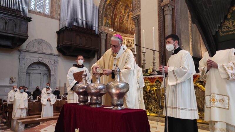 Stamattina, nella Basilica Cattedrale Protometropolitana “S. Maria Assunta”, l’Arcivescovo Metropolita Mons. Giovanni Accolla ha presieduto la Messa del Crisma, concelebrata con i presbiteri della Chiesa messinese che, interrogati dal Vescovo, hanno rinnovato le promesse fatte il giorno dell’Ordinazione sacerdotale. Durante il solenne pontificale, per antichissima tradizione, sono stati benedetti anche l’olio per il sacro crisma, l’olio degli infermi e l’olio dei catecumeni, segni sacramentali che configurano a Cristo, l’Unto nello Spirito per eccellenza.