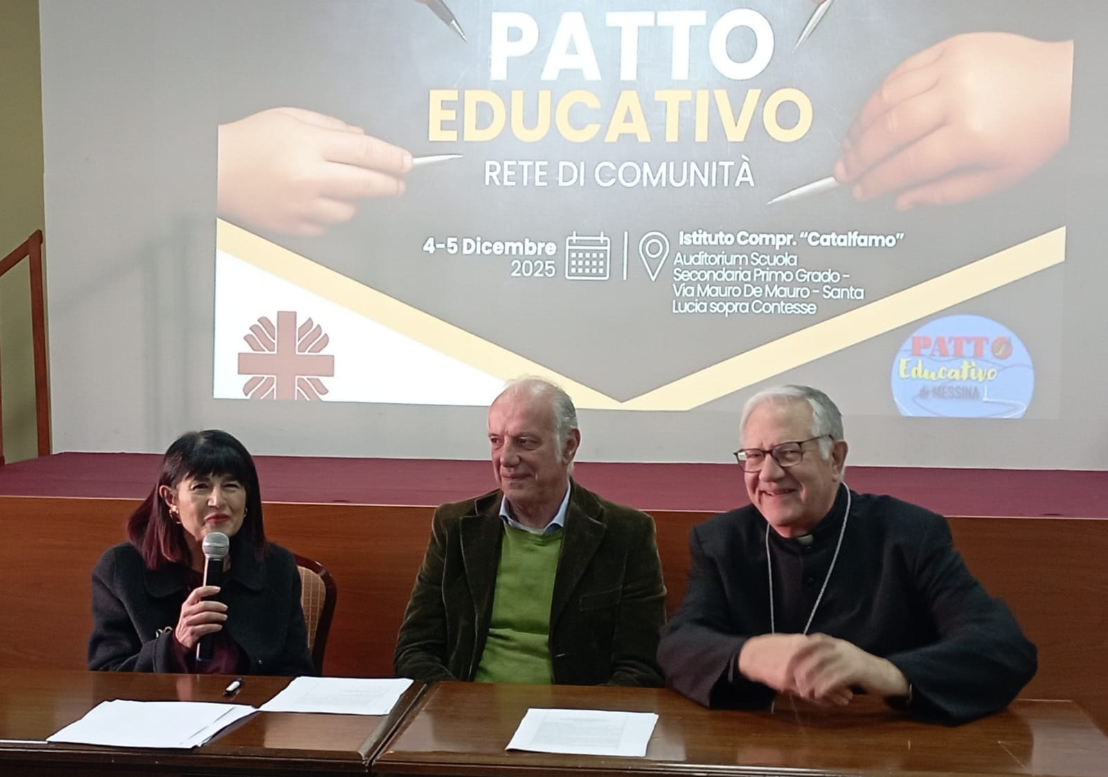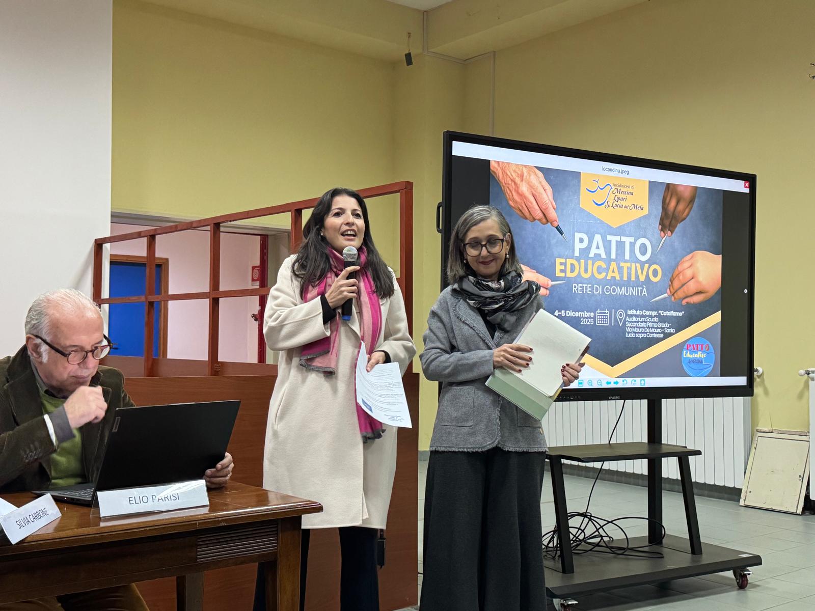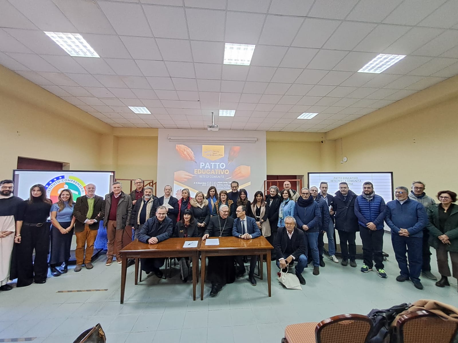 Primi firmatari S.E mons. Giovanni Accolla e S.E. il Prefetto dott.ssa Cosima Di Stani, una grande foto di gruppo con tutti i firmatari ha concluso i lavori della due giorni dedicati alla costruzione della comunità educante presso l’ Auditorium dell’ I.C. “Catalfamo” a Santa Lucia sopra Contesse.
