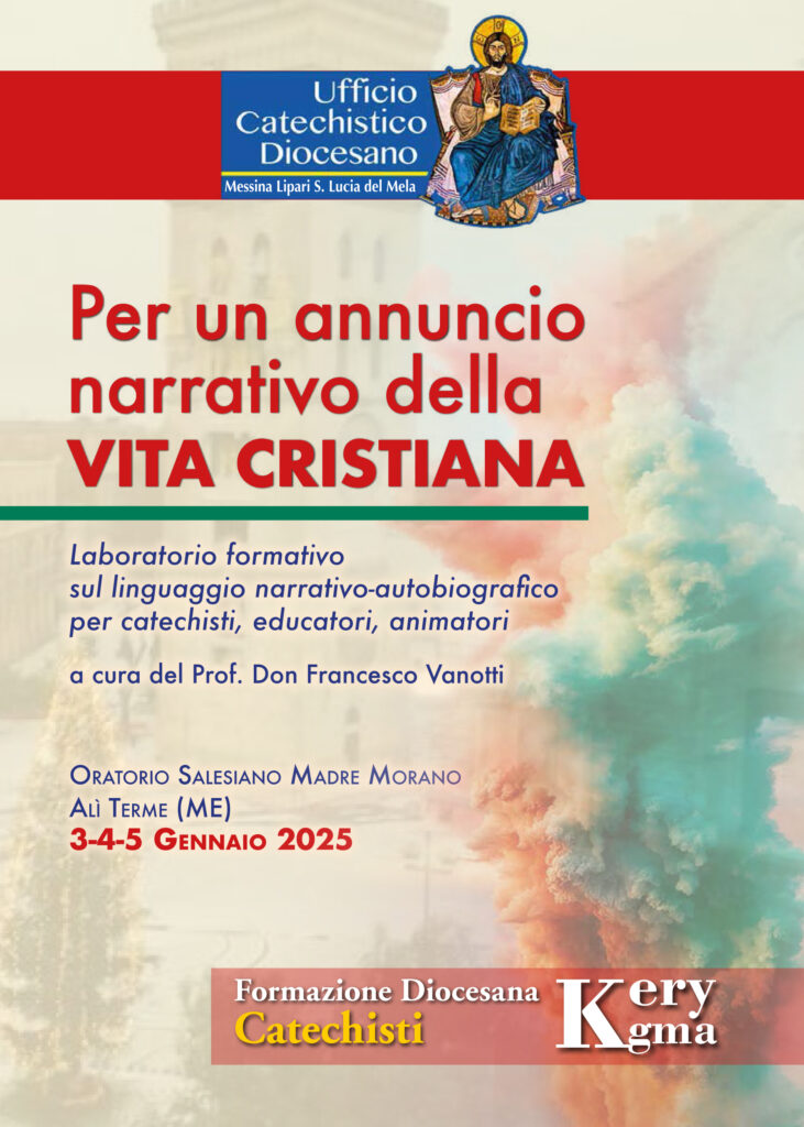 Dal 2 al 5 gennaio presso l’Oratorio salesiano di Alì Terme, l’ufficio catechistico diocesano organizza il laboratorio narrativo rivolto a catechisti, educatori e animatori, dal tema: “Per un annuncio narrativo della vita cristiana”.