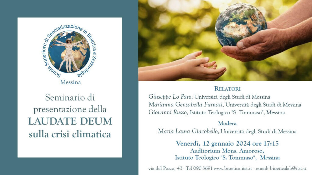 La Scuola Superiore di Specializzazione in Bioetica e Sessuologia, presenta il documento di Papa Francesco (4.10.2023) sulle mutazioni climatiche “LAUDATE DEUM”.