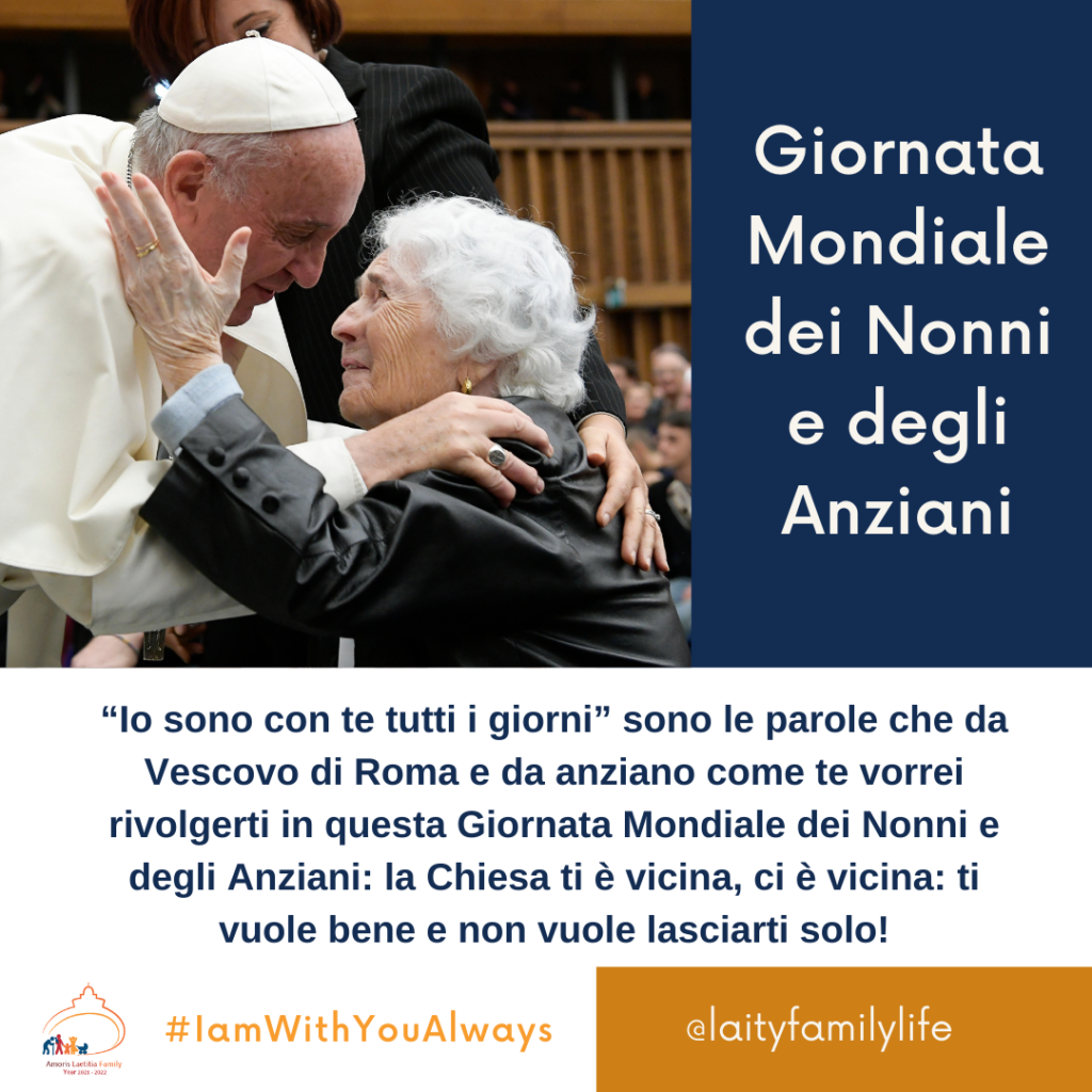 Papa Francesco ha più volte manifestato la sua vicinanza a coloro che hanno subito in modo più forte le difficoltà della pandemia; per questo ha indetto una Giornata Mondiale dei Nonni e degli Anziani nella domenica più vicina alla memoria dei Santi Gioacchino e Anna; quest’anno la Giornata si terrà domenica 25 luglio.