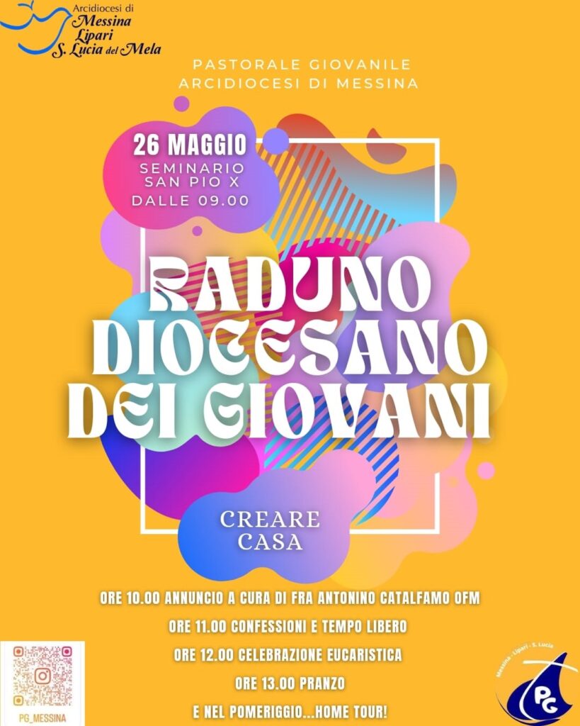 L’Ufficio di Pastorale Giovanile diocesano, condivide il programma del Raduno Diocesano dei Giovani che si terrà il prossimo 26 Maggio, presso il Seminario Arcivescovile San Pio X.
