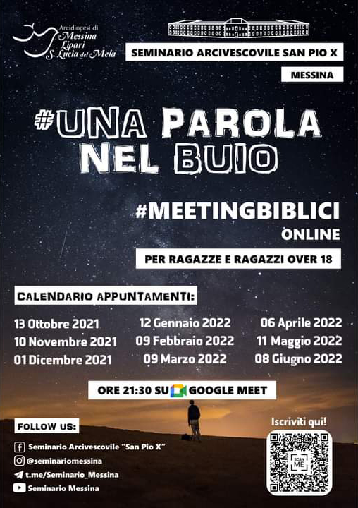 Sulla scia dell’iniziativa avviata lo scorso anno, il Seminario Arcivescovile “S. Pio X” ripropone i #MeetingBiblici dal titolo “Una Parola nel buio“, incontri online rivolgi ai giovani del nostro tempo incentrati sulla riflessione e la meditazione della Sacra Scrittura.