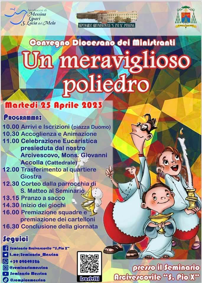 La comunità diocesana unitamente alla comunità del Seminario Arcivescovile “S. Pio X” organizza il CONVEGNO DIOCESANO DEI MINISTRANTI martedì 25 aprile 2023.