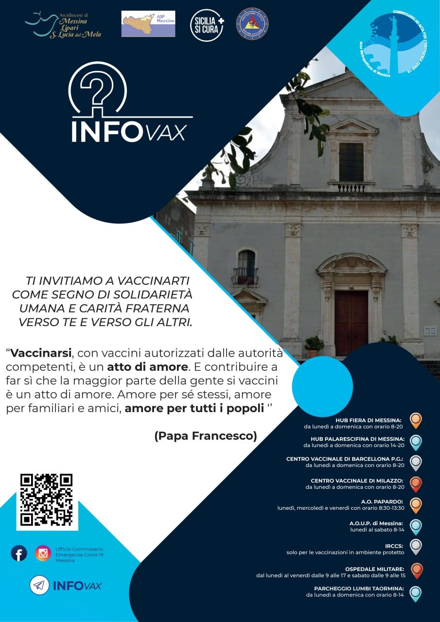 “Nella cura della relazione pastorale non deve mai mancare l’attenzione massima alle persone che s’incontrano e che s’intende servire come operatori. Tale attenzione diventa gesto di amore anche attraverso la scelta di vaccinarsi”, come ha ricordato Papa Francesco nel video messaggio ai popoli dell’America Latina del 18 agosto 2021. Ciò significa che la Chiesa non vuole rimanere estranea e, con la sua presenza sul territorio, attraverso i pastori, non vuol far altro che suggerire e incoraggiare la gente a vaccinarsi, percependo sempre più la vaccinazione come atto di civile convivenza oltre che come segno di carità fraterna: “Facciamolo come atto di risposta al mandato del Signore di servirci gli uni gli altri, come lui si è fatto nostro servo; come segno di accoglienza del suo invito a prenderci cura gli uni degli altri, come lui si è preso cura di noi”.